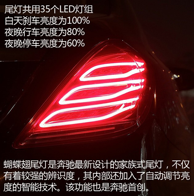 相比于兵家必争的头灯设计,尾灯则相对被忽视很多,想想看也就宝马的“L”型尾灯称得上是比较经典的尾灯设计。就连奥迪的尾灯至今也没有一个能被世人广为流传的叫法。不过或许我们正见证一个新的经典尾灯的诞生。那就是奔驰蝴蝶翅尾灯。同样在出彩外形设计的同时,奔驰还对其尾灯加入了自动调节亮度的功能。这项技术也被官方称之为世界上最聪明的尾灯。