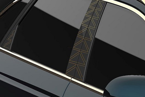 车身侧面,SR7黄金水晶版车型的侧窗饰条以及车顶行李架均采用了镀金装饰,突显质感。侧窗间的B柱及C柱三角挡板部分进行了三角形镀金暗线处理。在车身电源启动后,四个镶嵌水晶的车门把手将会点亮多种色彩的光源。此外,新车轮圈的中央标志也采用了镀金工艺,提升了整车的奢华风格。内饰部分尚无效果图可供展示,但预计新车的内饰设计将与外观风格保持一致,定位高端。