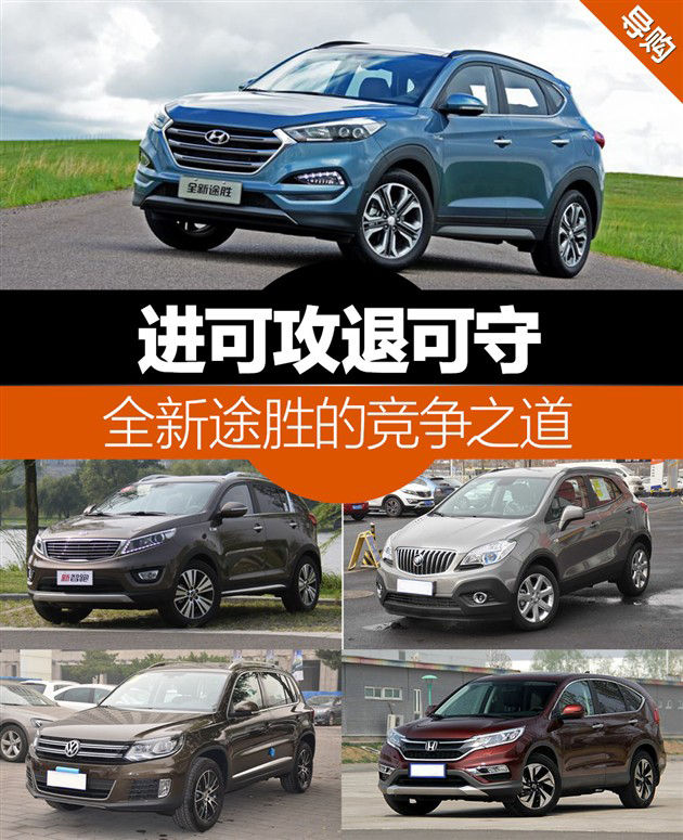 北京现代全新途胜售价15.99万-23.99万元,定位于紧凑级SUV,其直接竞争对手为起亚智跑和马自达CX-5等车型;同时,全新途胜的高配车型还会和途观、CR-V等品牌影响较大的SUV展开竞争。其低配车型会与高端小型SUV,如别克昂科拉有竞争关系。