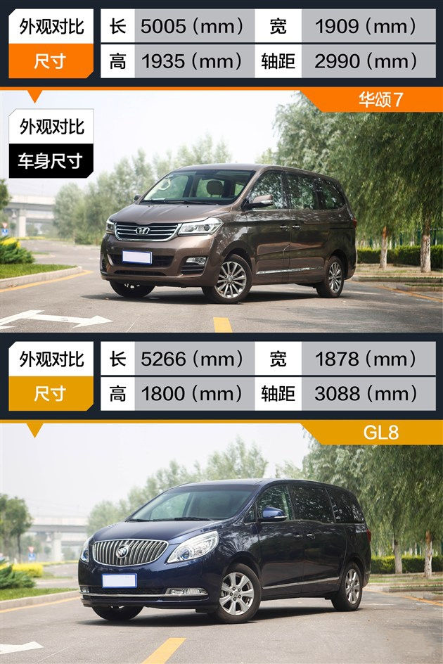 从车型数量来看,目前华颂7只有低、中、高配三款车型,中低配版搭载的低功率版本的2.0T发动机,而GL8已经有8款车型在售,2.4L、3.0L两种排量,选择要更多一些。而且能够接受老款经典版的外观设计化,24.8万元以下就可以买到。