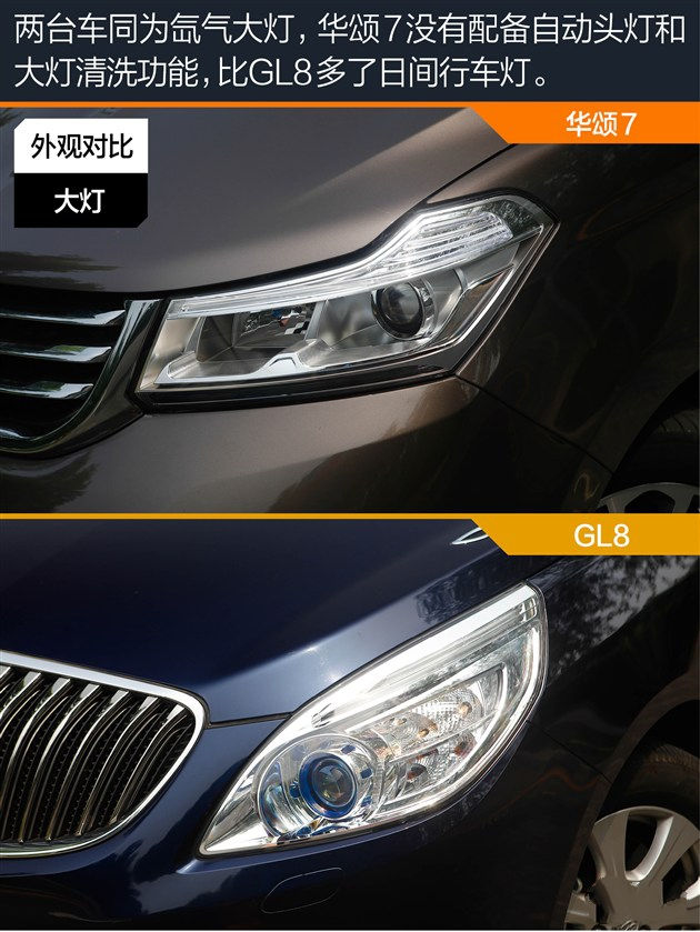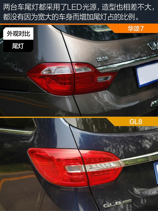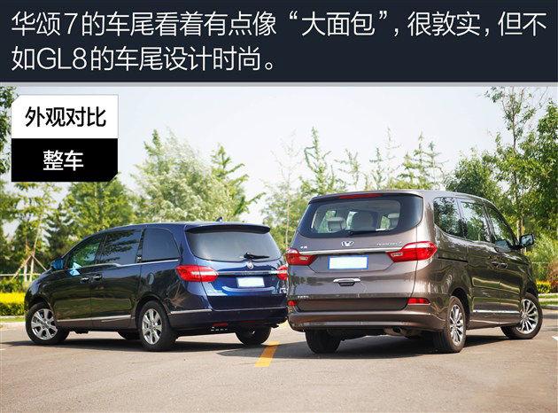 华颂7的外观设计是典型的商务用车,整体的时尚感不如GL8,但较高的车顶让其空间的实用性更强。虽然车身长度上GL8要大一些,但从视觉效果看,华颂7整体都要比GL8大了一圈,看着很大气。在外观配置方面,顶配版本的华颂7要比同价位版本的GL8更有优势,氙灯、大灯高度调节以及日间行车灯都是优于GL8的地方,但不带自动大灯比较遗憾。