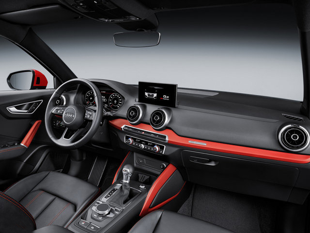 另外,新车的腰线非常平直,给该车增添了硬朗的感觉。尾部方面,新车同样延续了硬朗的风格,尾灯采用了T型设计,LED光带为光源。内饰方面,奥迪Q2延续了家族的设计风格,与奥迪A3非常相似,内饰配色也非常符合这款车型的定位,动感时尚气息浓厚。另外,新车搭载中控液晶屏, 三辐平底多功能方向盘,当然还有奥迪的MMI控制系统。