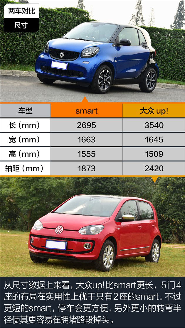 全新smart对比大众up