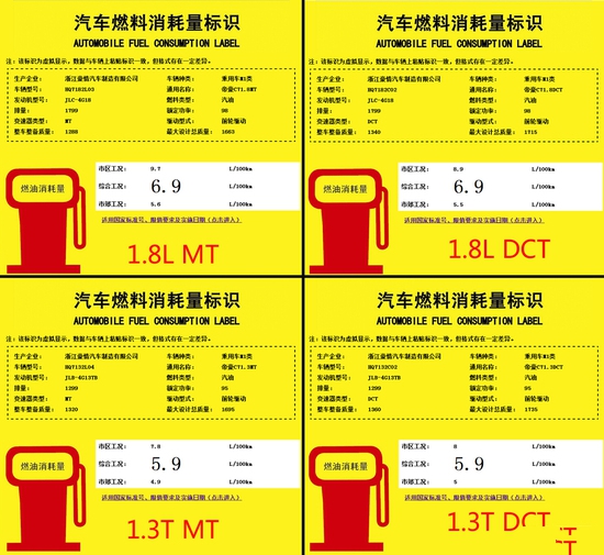 帝豪C7 四组动力组合 油耗信息