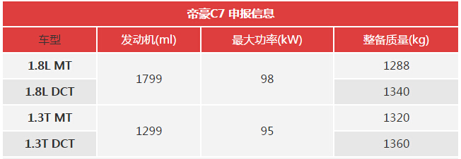 帝豪S7三厢版已申报或叫C7 配1.3T/1.8L