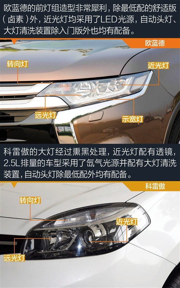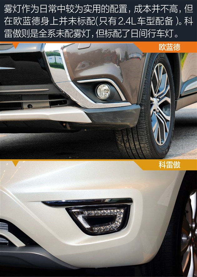 此次,我们选择了两车价格完全相同的车型,欧蓝德2.4L四驱精英版与科雷傲2.5L两驱舒适运动版(两车的指导价均为25.98万元)进行配置上的对比,以此来看看两车都有哪些差异。