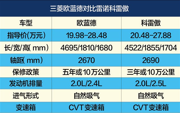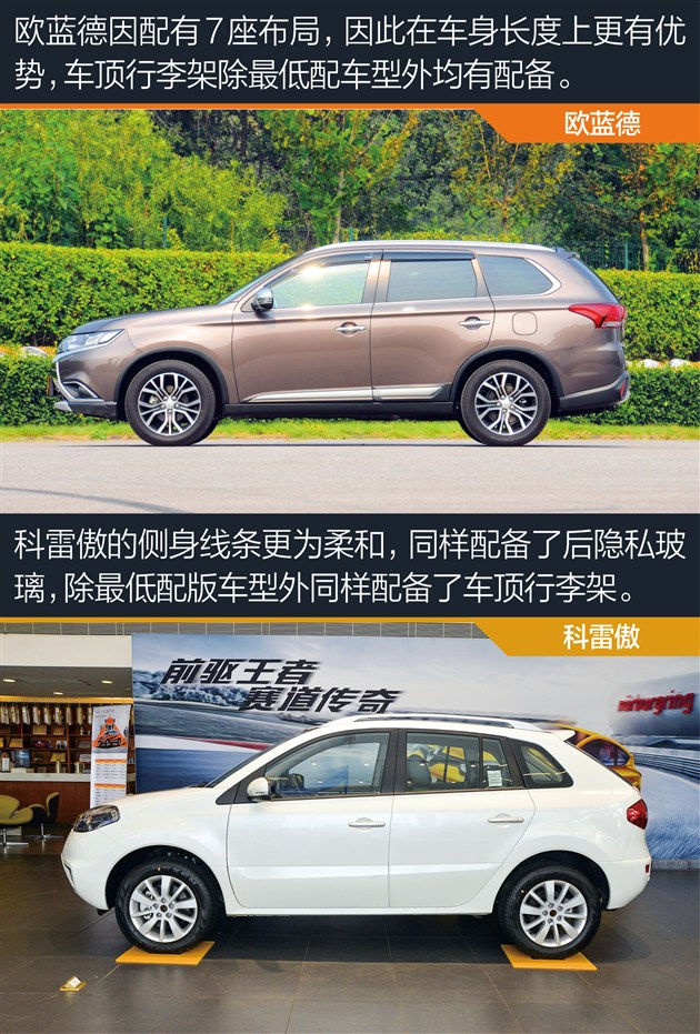 | 车型/配置 | 欧蓝德2.4L四驱精英版7座 | 科雷傲2.5L两驱舒适运动版 |