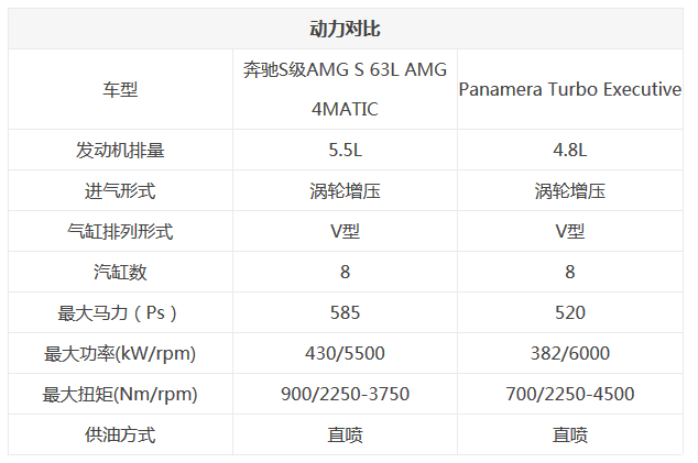 动力配置水平:奔驰S63L AMG>Panamera Turbo