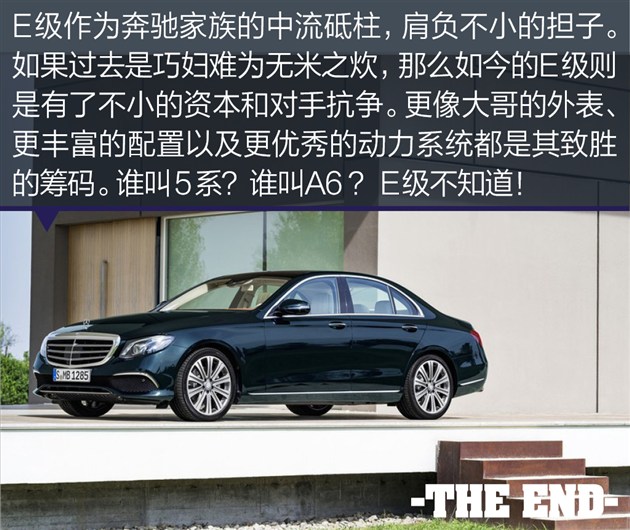 全文总结:E级作为奔驰家族的中流砥柱,若想在目前激烈的市场竞争中杀出重围,拥有S级的外表,更丰富的配置以及强大的动力系统都是制胜的法宝。全新奔驰E级的未来值得期待。