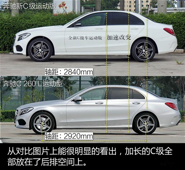 那接下来就是单纯的长轴距和短轴距的PK了,短轴距的入门车型为奔驰C200,长轴距的入门车型为奔驰C180L.两款车型前脸造型基本无区别,在细节造型上有些小的变化,两车指导价分别为31.48万元和32.58万元,长轴距稍贵。车身尺寸方面,由于是长轴距,所以C180L在长度和轴距上要比C200分别长出66mm与80mm。C200长宽高及轴距分别为4717/1810/1442/2840mm,C180L长宽高及轴距分别为4783/1810/1442/2920mm。