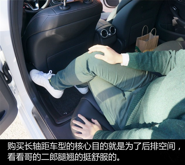 得益于更长轴距,C180L在后排腿部空间表现显现,体验者均为180cm情况下,C180L两拳的后排腿部空间完胜C200三指空间。这也是加长版最大的优势,没有之一。
