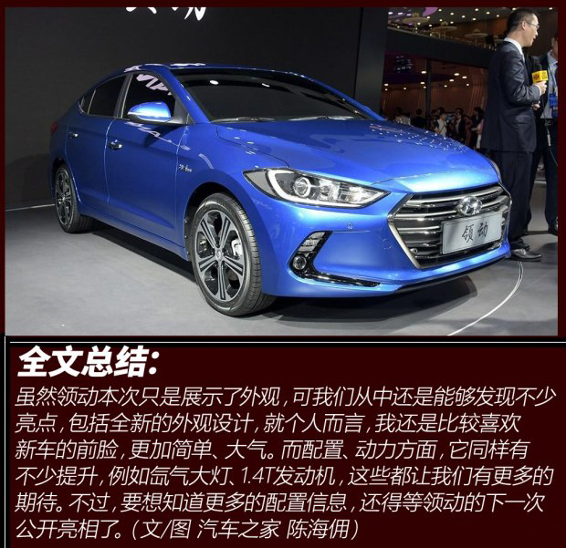 在过去2015的广州车展,如果没有特别抢眼的车型,那这个品牌很容易就会被其它话题“淹没”。而北京现代这回就带来了索纳塔九混合动力版以及一款重磅车型—领动,赚足了人气。实际上,领动就是海外第六代Elantra车型,它预计将于今年3月投放市场。在本次广州车展上,千呼万唤始出来的领动却犹抱琵琶半遮面,只是展现了外观,而其内饰仍然很神秘。尽管如此,细节的亮点还是让我们初步领略了它的魅力。