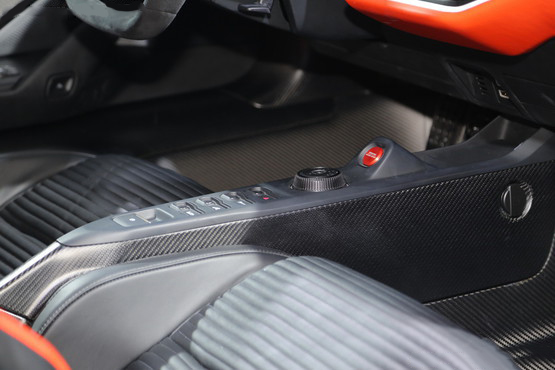 内饰方面,新车中控台采用了不规则的造型设计,层次感较为丰富,局部红色的配色也使内饰更加富有激情。此外,该车装配了一款带有众多功能按键的平底方向盘,其表面由防滑材料包裹,方向盘后部尺寸较大的换挡拨片标榜了其突出的性能。