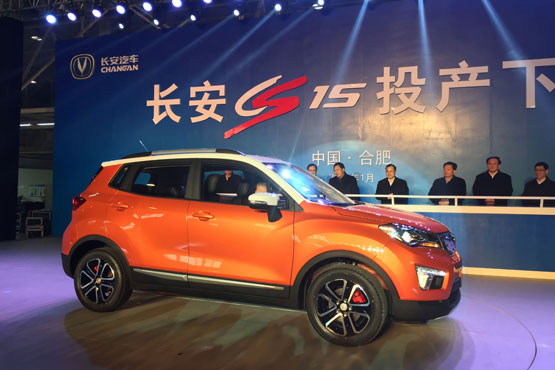 据天翼汽车消息,2016年1月14日,长安汽车CS15投产下线仪式在长安汽车合肥基地总装车间举行。CS15作为长安汽车在小型SUV市场投放的第二款车型,车型定位低于CS35。根据具体消息,新车将于今年3月底正式上市,长安汽车将CS15的年销量目标为七万辆。