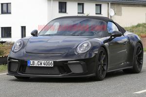 近日从外媒拍摄到了新款保时捷911Speedster的谍照。该车是当前这一代911的最后一个款型,基于911GTS打造。