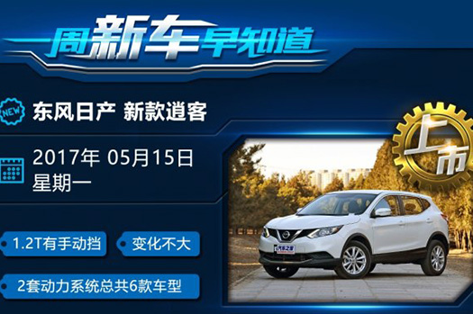 大家好,新一期《一周新车早知道》又如期为大家奉上了。在5月15-21日这一周里将会有5款新车与大家见面,其中新款逍客将于5月1...