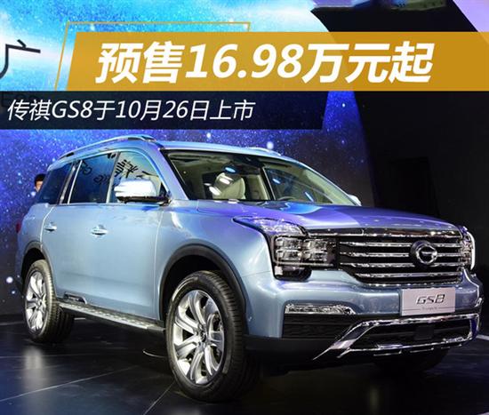 广汽传祺全新中型SUV-GS8有望于10月26日上市,价格区间为16.98-25.98万元。此款车作为传祺全新旗舰SUV,在动力方面搭载了2.0T...