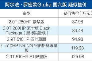 Giulia/Stelvio国六版或售37.98万起 造型延续/2.0T高功起步
