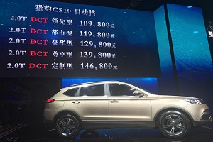 天翼汽车讯:在刚刚结束的今年北京车展上,猎豹CS10新车自动挡车型正式销售。这款新车将搭载一台三菱的2.0T发动机,匹配6速湿...