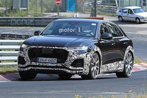 奥迪RSQ8最新赛道测试谍照将或搭载混动系统易车讯近日,有海外媒体捕捉到了奥迪全新旗舰性能SUV车型RSQ8纽北测试照片,测试车...